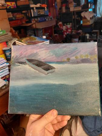 Serene Seascape Canvas Art Ione Boat By Island Home 10x8" Oil Painting