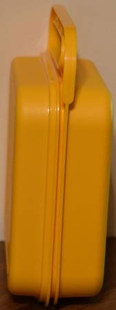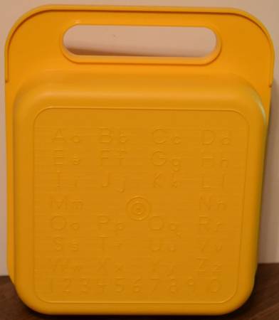 New, Never used. It has the letters of the alphabet (both upper case and lower case) and numbers 1-10 on the front cover. It measures 8" across and 10" tall. It's 3" deep. Made of typical Tupperware material, it's strong and ready for what your child may throw at it!. It can be use as Lunch Box, can carry crayons or school supplies. Comes from a smoke/Pet free home. Will sell for $4.98 Pickup ONLY, can NOT deliver.