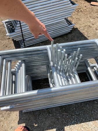 I DELIVER! I have over a truck load of these BRAND-NEW Heavy-Duty Chain Link Construction Fence Panels in both 10' x 6' and 12' x 6' in stock and ready to go. I also have the heavy-duty rectangular stands to go with them. These are the type of chain link fence panels that you see around construction sites. These are not dog kennel panels, but they can be used for dogs, especially if you want something a little beefier and better braced than the typical dog kennel panel. Add a walk-through gate to any size panel for a $65 upcharge. Also great for sheep/goats, poultry, back yard fence, pool enclosures, boat/RV storage, impound lots, crowd control, special events, or any place you want a fence. But when you are ready to move it, you can. They clamp together so you don't need a professional installer. No digging necessary! Why make the rental companies rich when you can own your own fence panels that you can use again and again. I also make 8' tall panels, and panels for the tops of plastic water filled barriers or concrete barriers upon request. Do you need your site secured fast? Call me. Do you have a large opening that requires a cantilevered gate, but the price scared you to death? Call me for a quote. I only use American milled pipe and chain link, so tariffs are not an issue. I'm a small business and I take pride in making a good product, and my prices are fair. 16 panel minimum order required for delivery with a fee. Free Standing fence - no digging required.