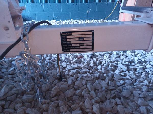 The 2002 dual-axle EZ Loader trailer has surge brakes and is in good shape. The wooden bunks should be replaced soon. New winch and paint touch-up. I just put four brand new tires on it (0 miles). I do not have any paperwork on the trailer. However, I did track down the VIN (1L8T1202531S73567) through the factory and installed a new VIN label. So, it should be good to go for a VIN inspection and bonded title application.