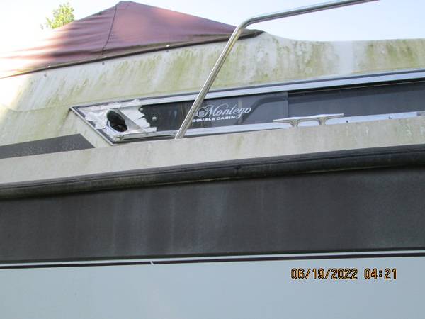 montego double cabin,i measured 30 foot long,i bought this new trailer last year for over 3000,it comes with the boat,i am disabled and cannot climb up there to take pitchers of the inside,THANKS KENNY cash only, no checks ,money orders or cashiers checks ,this sells on a bill of sale it is powered by 2 four cyclinder gas motors please call kenny at show contact info