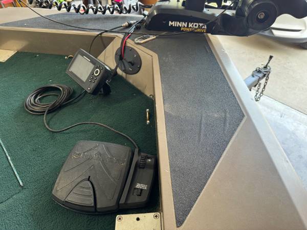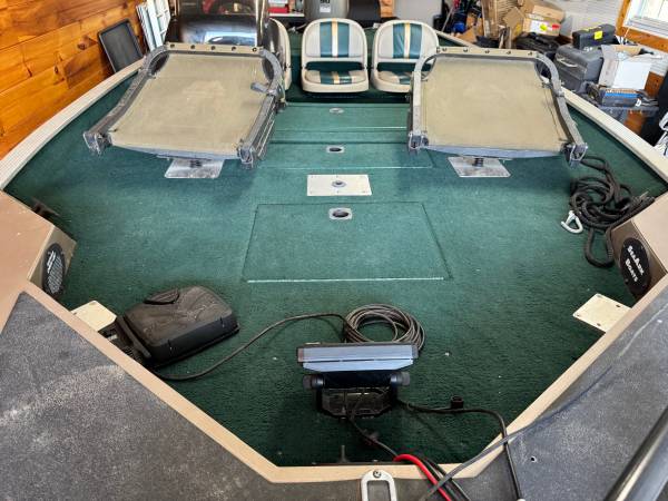 Fire extinguisher, aerator external bubble machine for bait well buckets, fish finders, rope, custom step, seat poles, Millennium seats, paddle, jumper cables, boat cover, emergency tool set, extra seat inserts to allow two people to fish off front and two off