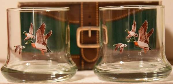 Vintage Avon Chesapeake Collection. This is the (2) 8oz, drinking glasses with matching Mallard Ducks prints on each glass. These glasses are rock tumbler style.