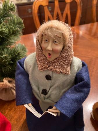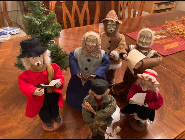 Vintage Christmas Carolers that look like apple dolls of long ago. Set of six with Christmas tree. Great condition. Tallest is 12 inches. Storage container included. They would be a beautiful...