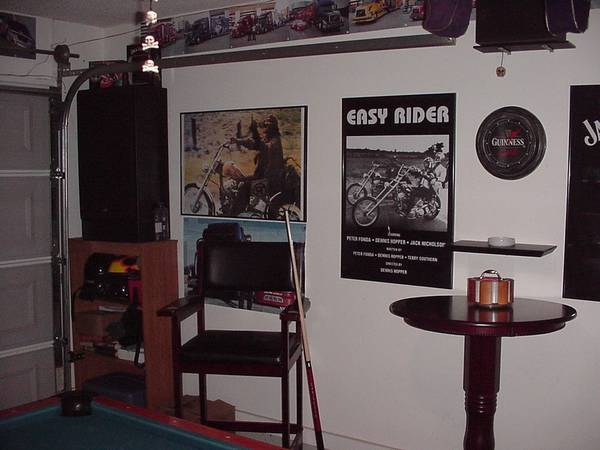 Had these Easy Rider movie posters for close to 20 years. Both are framed which really helped keep the posters in great shape over the years. The B/W official movie poster is 24"W x 36"H and the Color Dennis Hopper 'Billy flipping the bird' poster is 36"W x 24"H. Asking $20 cash for each poster.. or you can buy both for $35. Main pic is both posters hanging in my garage.