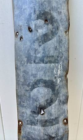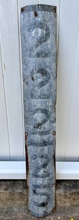 Found this vertical milepost sign "222/25" (actually, milepost 222 pole 25) from an old telegraph pole where Nashville Chattanooga & St. Louis Railway, Louisville & Nashville Railroad to CSX Transportation ran in Memphis. I cleaned and restored to make it look neat. It is thin aluminum sign weigh 2.5 pounds. The sign measurement is 7 inches width by 45-3/8 inches height.