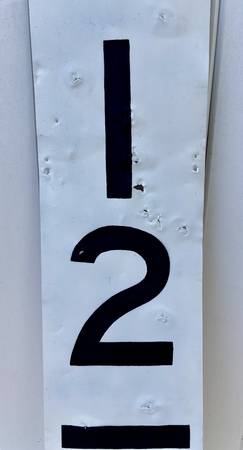 Found this vertical milepost sign "212/20" (actually, milepost 212 pole 20) from an old telegraph pole where Nashville Chattanooga & St. Louis Railway, Louisville & Nashville Railroad to CSX Transportation ran in Memphis. I cleaned, restored and repainted to make it look neat. It is thin aluminum sign weigh 2.5 pounds. The sign measurement is 7 inches width by 48-1/4 inches height.