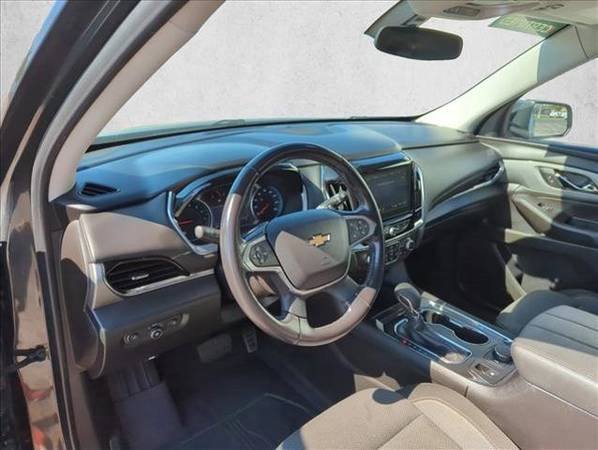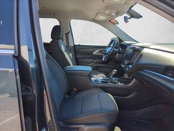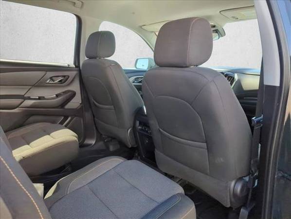 * Convenience And Driver Confidence Package * 3rd Row Seat * Lpo; Floor Liner Package * Lpo; Bright Wheel Locks * Audio System; Chevrolet Infotainment 3 Plus System * Display; 4.2" Driver Instrument Information; Enhanced; Multi-Color * Emissions; Federal Requirements * Engine; 3.6L V6; Sidi; Vvt * Graphite Metallic * Jet Black; Premium Cloth Seat Trim * Lane Change Alert * Liftgate; Rear Power * Lpo; All-Weather Floor Liner; 3Rd Row * Lpo; All-Weather Floor Liner; First And Second Row * Lpo; Integrated Cargo Liner * Lt Cloth Preferred Equipment Group * Rear Cross Traffic Alert * Rear Park Assist With Audible Warning * Remote Start * Seating; 7-Passenger (2-2-3 Seating Configuration) * Seats; Front Bucket * Seats; Heated Driver And Front Passenger * Tires; P255/65R18 All-Season Blackwall * Transmission; 9-Speed Automatic * Universal Home Remote * Wheels; 18" (45.7 Cm) Bright Silver Painted AluminumThis vehicle includes a Money-Back Guarantee* and passed our precise inspection process. Best of all the price you see is the price you pay. No haggling. No back and forth. No pressure. And this price is so good it is guaranteed. *Money-Back Guarantee is valid for 5 days or 250 miles, whichever comes first. Subject to certain terms and conditions. See store for details. Some restrictions apply.This Chevrolet includes: LANE CHANGE ALERT Blind Spot Monitor TIRES, P255/65R18 ALL-SEASON BLACKWALL (STD) Tires - Front All-Season Tires - Rear All-Season SEATS, FRONT BUCKET (STD) Bucket Seats LPO, ALL-WEATHER FLOOR LINER, FIRST AND SECOND ROW Floor Mats LPO, ALL-WEATHER FLOOR LINER, 3RD ROW AUDIO SYSTEM, CHEVROLET INFOTAINMENT 3 PLUS SYSTEM 8" Smart Device Integration AM/FM Stereo Bluetooth Connection Auxiliary Audio Input MP3 Capability LIFTGATE, REAR POWER Power Liftgate Remote Trunk Release TRANSMISSION, 9-SPEED AUTOMATIC (STD) A/T 9-Speed A/T REAR CROSS TRAFFIC ALERT Cross-Traffic Alert JET BLACK, PREMIUM CLOTH SEAT TRIM Cloth Seats WHEELS, 18" Aluminum Wheels EMISSIONS, FEDERAL REQUIREMENTS REAR PARK ASSIST WITH AUDIBLE WARNING Rear Parking Aid LPO, INTEGRATED CARGO LINER REMOTE START Remote Engine Start LPO, FLOOR LINER PACKAGE Floor Mats LT CLOTH PREFERRED EQUIPMENT GROUP Cloth Seats LPO, BRIGHT WHEEL LOCKS Wheel Locks SEATS, HEATED DRIVER AND FRONT PASSENGER Heated Front Seat(s) DISPLAY, 4.2" DRIVER INSTRUMENT INFORMATION, ENHANCED, MULTI-COLOR ENGINE, 3.6L V6, SIDI, VVT V6 Cylinder Engine Gasoline Fuel SEATING, 7-PASSENGER 3rd Row Seat Bucket Seats UNIVERSAL HOME REMOTE Universal Garage Door Opener CONVENIENCE AND DRIVER CONFIDENCE PACKAGE Remote Engine Start Rear Parking Aid Universal Garage Door Opener Heated Front Seat(s) Bluetooth Connection Blind Spot Monitor Power Liftgate Auxiliary Audio Input Cross-Traffic Alert Remote Trunk Release MP3 Capability GRAPHITE METALLIC *Note - For third party subscriptions or services, please contact the dealer for more information.* This SUV gives you versatility, style and comfort all in one vehicle. This vehicle won't last long, take it home today. Surprising quality accompanied by a high level of performance...this Graphite Metallic on Jet Black Chevrolet Traverse LT Cloth could end up being the perfect match for you.