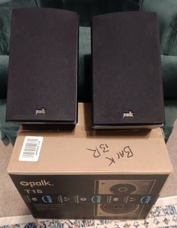 Polk CS10 Center Channel speaker and T15 "Bookshelf" speaker pair. Three speakers out of a HT system I no longer use. All in excellent shape functionally & cosmetically. I used the T15s as surrounds. They come in the original box with paperwork. $125 cash for all. Pickup in Bartlett. Call/text nine oh one four two one eleven seventy six.
