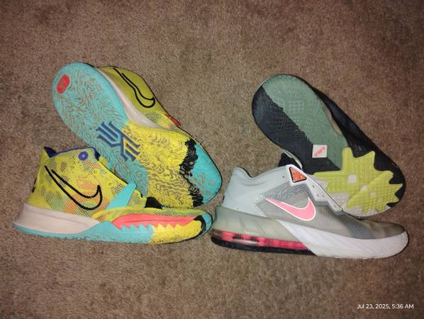 2 pair of NIKE', both pair are Size US 7 Youth or 8.5 womens (size interchangeable) with complete tread and in wonderful condition. .Asking $10 for both pair.