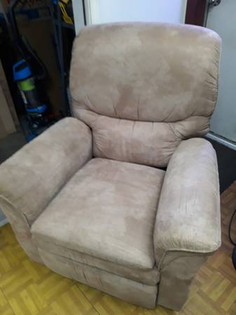 BEIGE LA-Z-BOY RECLINER LIKE NEW NO STAINS VERY CLEAN FROM A SMOKE FREE HOME BEEN IN STORAGE 320.00 OR MAKE OFFER CALL M-F 9-6 388-7973