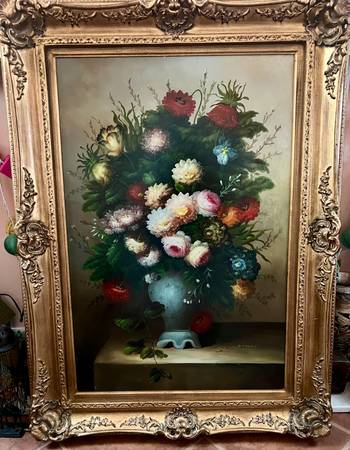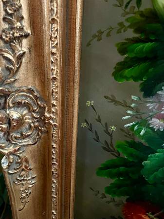 This large, 35“ x 45“, ornate frame is simply stunning and would be a great addition as a focal point to any wall in anyone’s home. The picture can be removed and replaced with another. This was...
