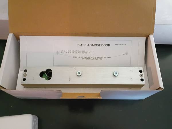 1200lb magnetic lock with Bond sensor,door status sensor and Led. Along with Mounting brackets and hardware. Open box.