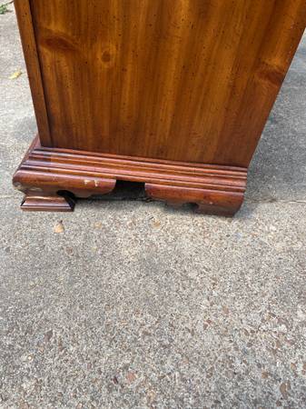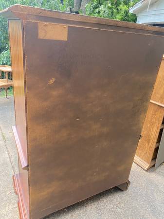 Project because 2 of the sliders will need screwing back on/top drawer is missing the facing so could do baskets etc./ and final thing is that the bottom will need attention (could possibly cut down to make level). Piece has great bones so with the right touch could become your lifetime piece of furniture..