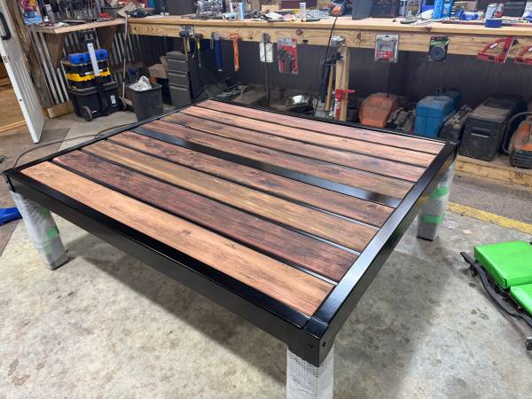Beautiful Industrial style iron table. Can be used outside under cover. Primed and powder coated. Adjustable feet to level table. Delivery available - pm@nine01-two five 8-eight 3 four 3 for price...
