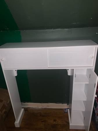 The item is brand new. Helps to optimize storage space in bathroom by utilizing the often wasted around the toilet.