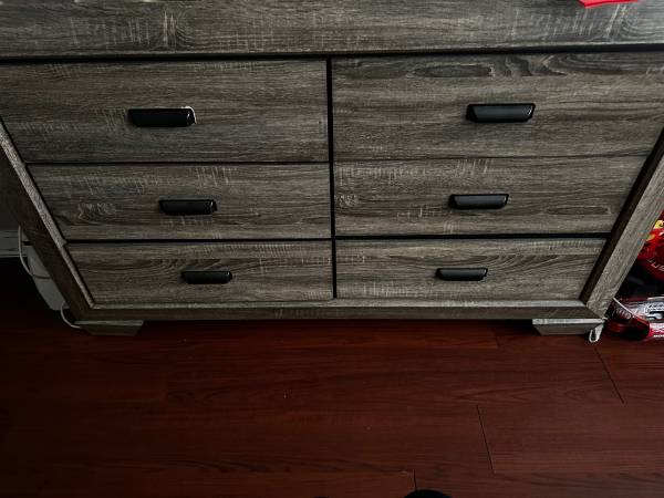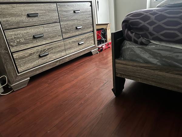Bedroom set for sale. Queen bedroom set two glass stands and one dresser Everything is in good condition dresser has minor damage. Must pick up items. Must be sold as soon as possible. Serious inquires only. $350 o.b.o. Text or email only. Bedroom must go. Burnt orange arm chair also available in set. Bedroom set must be gone by Monday 12/1/2025 morning 9:00am ***Must Sale Must go immediately ******