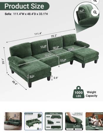 Priced to sell. Rarely used and in excellent, like new condition. It was delivered with the back cushions mishapen but is otherwise a great sofa. $200.00 via Venmo or CashApp only. You will need a...