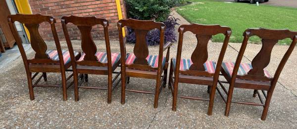 Needs a little TLC/A little dusty so clean and use as is but will need recovering. With purchase of chairs and you purchase fabric I’m happy to recover and deliver for an additional $50..