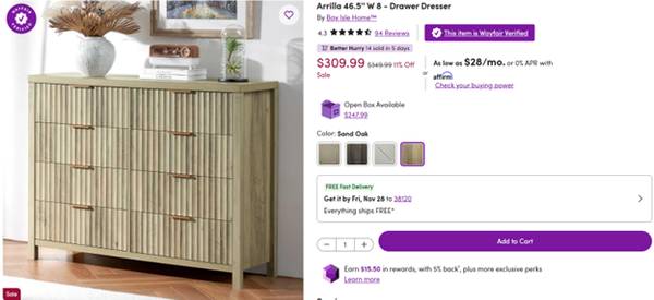 Wayfair Arrilla 46.5'' W 8 - Drawer Dresser - In Box, Requires Assembly - One Broken Piece Requires Fixing - Wayfair sent us entire new box instead of new piece. So we have entire dresser with one piece that needs woodwork fixing. If you know what to do, the rest can be assembled with fixed piece.