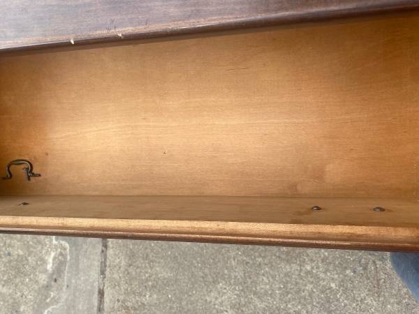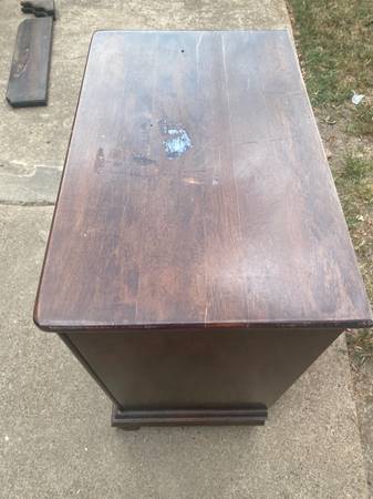 Could use as is or paint into something amazing. 1 of the hardware is broken.