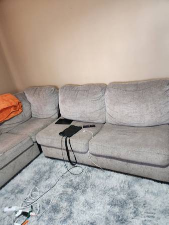 I have a grey sectional its in good condition. The pillow coverings are removable so they can be washed if something is spilled. I got new furniture an doesn't have space .
