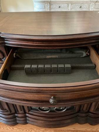 2 drawers with pads 1 silverware drawer 3 lower cabinets with adjustable shelves One owner, never moved