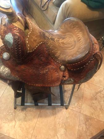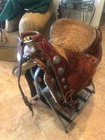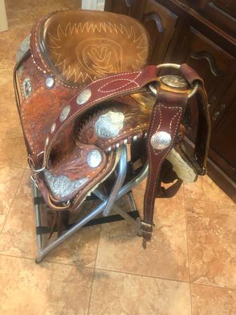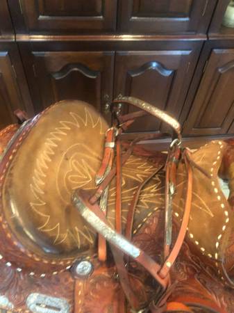 Ted Standard hand made 16” show saddle with Bridle and breast strap
