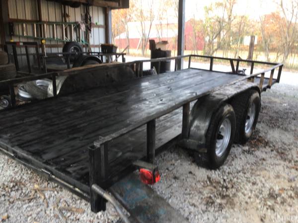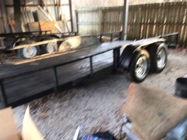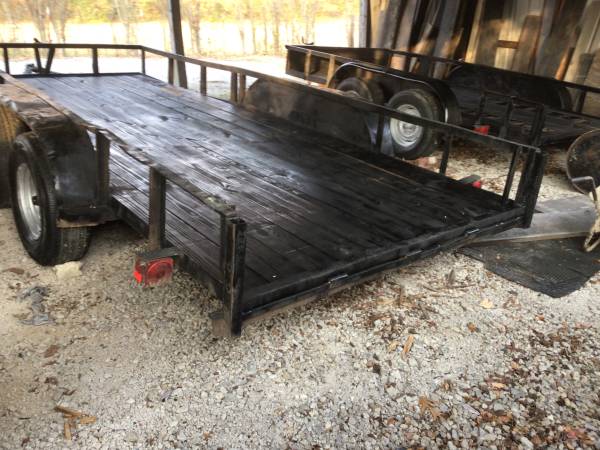 Selling my two factory trailers one 16’x 6’4” wide, tandem axles, new wood flood, lights and harness, good 15” tires, $1450, ————call only show contact info