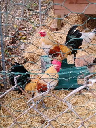 English Game X Booted Bantam roosters. Four roos, 8 mos old. Got too many roos! Cash or Venmo. $10 each.