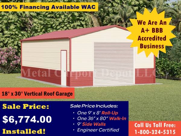 Buy Now, Pay Monthly! We've Partnered With Acorn Finance® To Offer 100% Financing With WAC. Acorn Finance® is a Marketplace of Top Lenders that lets you View Offers Online with No Impact On Your Credit Score. Loans are available up to $100k with Competitive Rates. If Approved at 9.95%, your payment on this Metal Building would be just $143.19 per month for 60 months, with ZERO Down Payment, tax not included. You can Apply Securely Online here at: https://metalcarportdepot.link/Acorn-Secure-Finance-Portal
