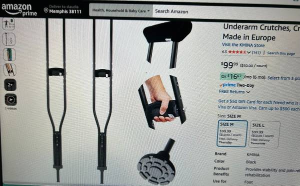 These are KMINA crutches for adults. Adjustable from 45" to 53.5" with 9 adjustments. Thanks to the underarm and hand pads (both washable) and its light weight, these reduce underarm pain, making them perfect for daily use. The wide non-slip crutches ends (7/8") ensure adhesion to the floor, increasing stability and confidence while walking.