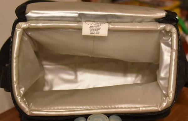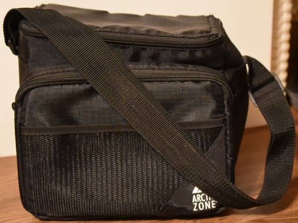 like New condition. Made by outer circle products. Has 3 compartments(1 Top and 2 front compartments) 2 are zipper compartments. Color: Black Style: 63000 Comes with 2 Rubbermaid Blue Ice. Cooler/Lunchbox measures 8 ¼ tall by 7 inches wide. Will sell for $6.85