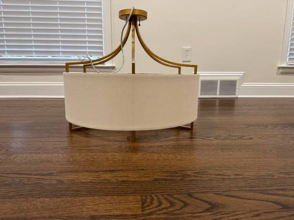 I'm selling this Lacey Semi-flush mount four-light fixture in gold. This was purchased from Magnolia Lighting down in Hernando by the previous owners of my house. It's not my style, so I took it down and replaced it with something more modern.