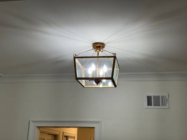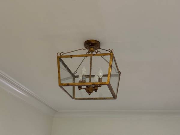 I'm selling this Cordon flush mount four-light fixture in gold. This was purchased from Magnolia Lighting down in Hernando by the previous owners of my house. It's not my style, so I took it down and replaced it with something more modern.