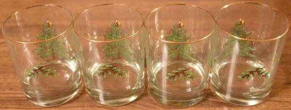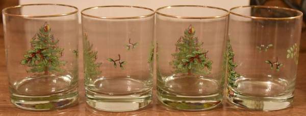 New, never used. Still in original box. Took out ONLY to take photos of glasses. Brand: Spode. Glasses measures 4 inches tall by 3 1/8 inches wide. Main color clear with gold rim and Christmas decoration. UPC; 092764339205. Will sell for $16.00 Pickup ONLY, can NOT deliver.