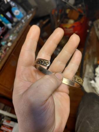 vintage gold and silver tone indented design cut bangle bracelet.