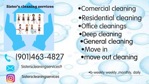 Sisterβs Cleaning 901 π§½ Looking for reliable, affordable, and detailed cleaning? Weβve got you covered! β