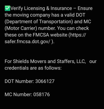 Now why you going to risk hiring unlicensed, uninsured movers🤔Are you (Call or text 888-649-9978 www.shieldsmovers.net/booking)