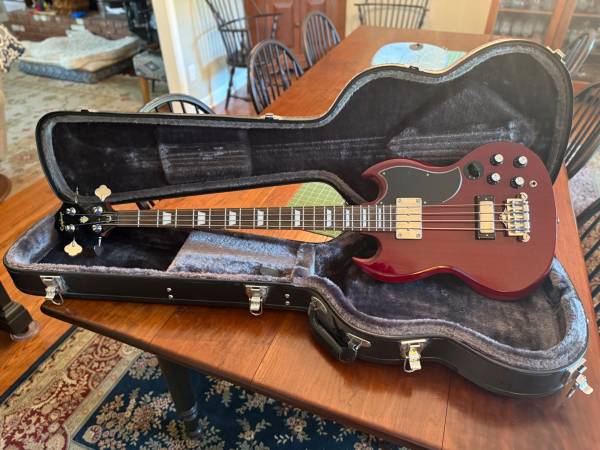 Extremely Nice (mint) SG-style Dual Pick-up Bass. Excellent/mint condition, without blemish. At a minimum, valuation of this bass w/case is well over $650. Case valued over $130+ by itself. The Epiphone EB-3 Bass sports a mahogany body for exceptional sustain and Humbucking pickups to give you warm, mellow tones. Mahogany body, neck and rosewood fingerboard.