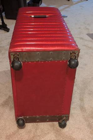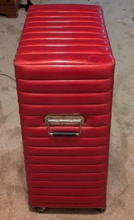 Red sparkle Naugahyde Zodiac vinyl roll and pleated covering material.