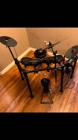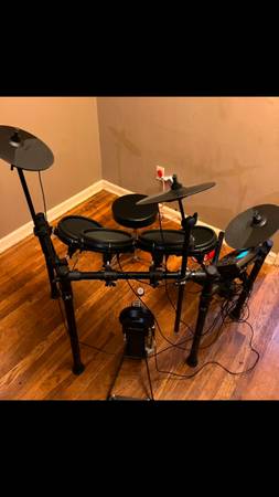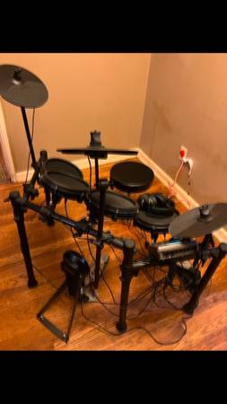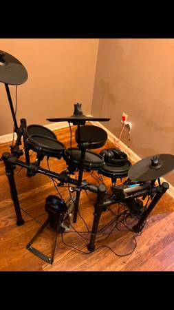 Bought brand new for my 7 year old son for Christmas. Good set for younger children or adults. Beginner to intermediate. Headphones and drum throne are not included but will throw in a few sets of drumsticks. Feel free to email or CL chat with any questions etc