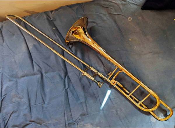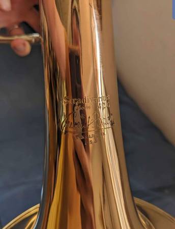Used Bach Stradivarius Trombone for sale. Model 42G with trigger. Limited edition rose gold finish on bell. Great for a dedicated student up through professional players. Comes with a backpack style...