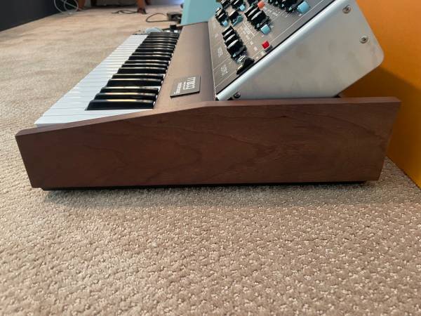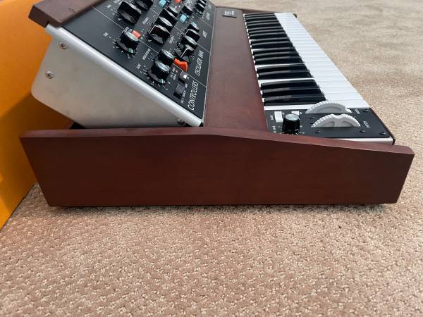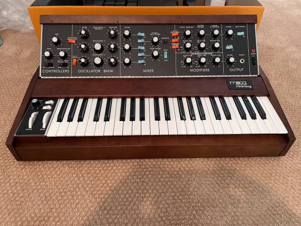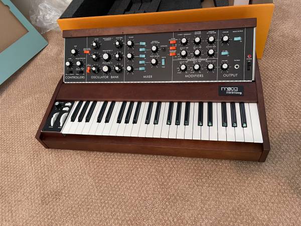 ***Please include your cell number in your reply--and in the subject field--or I will not respond.***This is an almost new (played less than 30 minutes) Minimoog Model D reissue. The only imperfection are 2 tiny dings which could be easily stained with a pen to become invisible. Includes everything that came with it new (manuals, cables, boxes, etc.). Price is FIRM $3800. Due to the insane number of scammers and tire-kickers ***PLEASE include your cell number IN THE SUBJECT FIELD or I will not reply *** Thanks!