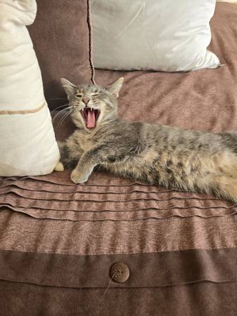 Free gray and black cats to good home. Youngest is severely allergic to them. Thwy MUST be rehomed immediately.