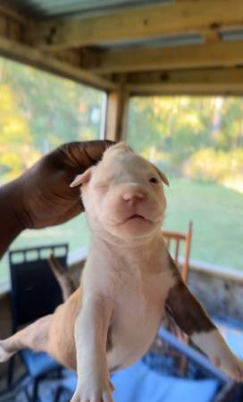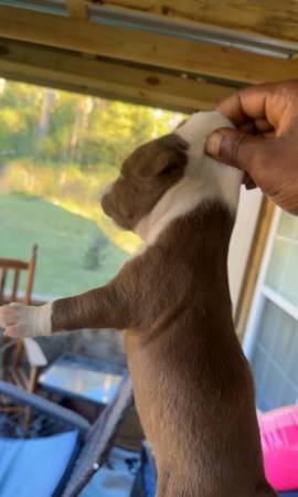 Brown and White puppy pitbull (great family dog) (Memphis)