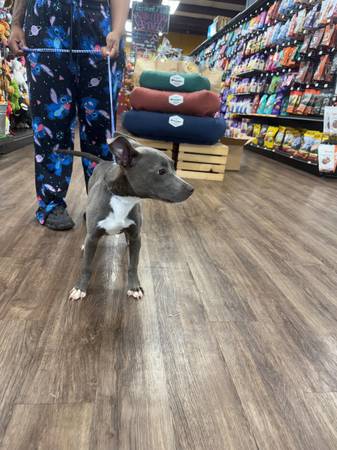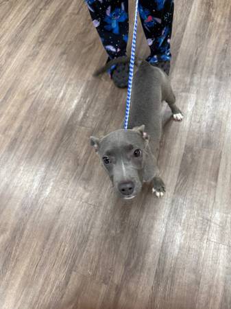 This is Nyla , she’s my cousin dog they just had a baby and they can’t keep her , she’s 6 or 7 months , she’s very playful , she good with kids and other dogs , she comes with a cage and her favorite monkey and octopus toys , for small rehoming fee .