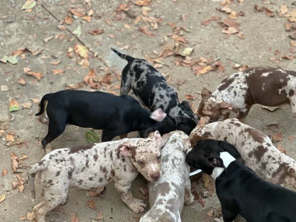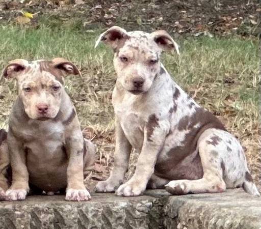 XL American Bully Tri /Merle mix; 5 puppies left , ABKC registered, Mom is Tri and Dad is Merle. In Tennessee can travel. 1300 Price negotiable.