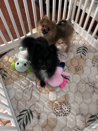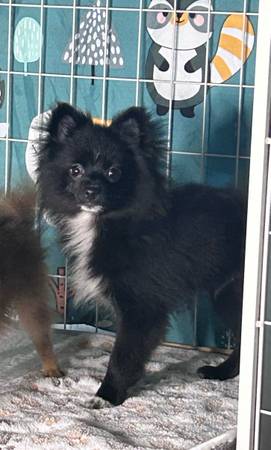 Pom black male, mom (spayed recently) and dad is on site. He has 3 sets of shots. Very healthy lil boy. (The sable one in 2nd pic is spoken for). Serious people only text for appt. $500 rehome fee. NO scams! Text for appt to see him in person. DO NOT FLAG, This is a real ad!! Thanks.