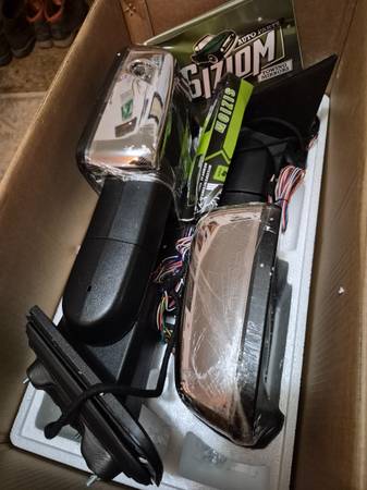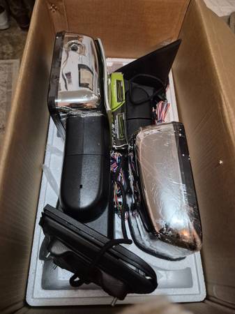 Brand new extendable tow mirrors with in glass blinker and outside mirror indicators. Also LED light that shines on ground when door is open. Plug and play. 2014-2018 Chevrolet Silverado